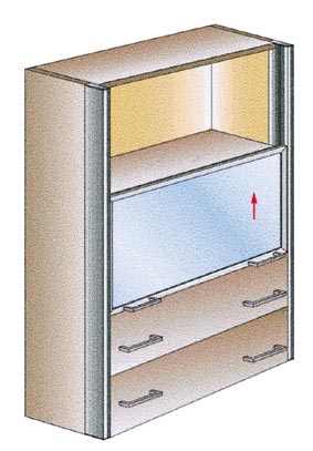 Häfele voll im Trend der Möbelwelt. Türen am Schrank vertikal schieben,
